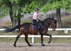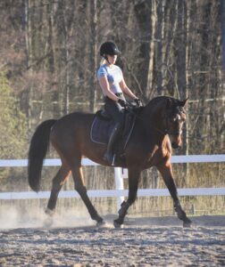 Kesällä 2025 Ripsin koulukurssilla sain kunnian ja ilon harjoitella Zaran kanssa 3/5 tuntia kurssista. Kurssin ensimmäisellä tunnilla saimme omalla tasollani oikein hyvää ravityöskentelyä aikaan, mutta laukkatehtävä tuotti suuria haasteita omasta ratsastuksestani johtuen. Kurssi oli kuitenkin nousujohteinen ja toisella tunnilla pääsimme jo laukkatehtäväänkin paremmin käsiksi. Kolmannella kerralla laukat pyörivätkin jo ihan kivasti! Onnistumisen hetket Zaran kanssa ovat todella palkitsevia ja tuovat lisää intoa harrastamiseen, ja sydämessäni läikähtää aina silloin, kun näen Hopotin hevosjaossani Zaran.