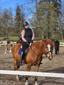 Aloitin ratsastuksen vuonna 1989 synnyinkaupungissani Jyväskylässä, Laajavuoren Ratsukoiden ratsastuskoulussa. Hevoset menivät heti suoraan sydämeeni ja vietinkin kunnon heppatyttönuoruuden. Muutin Helsinkiin 1999 ja ratsastusharrastuksessani oli hieman taukoa, kunnes löysin tieni pienelle yksityistallille Sipooseen. Siellä vierähti lähes parikymmentä vuotta maastoillen ja itsenäisesti kentällä ratsastellen. Husössä aloitin koronasyksynä 2020 ja palasin ratsastuskouluun yli 20 vuoden tauon jälkeen. Löysin rakkaalle harrastukselleni kodin ja olen oppinut ihan valtavasti Husön taitavilta hevosilta ja opettajilta.